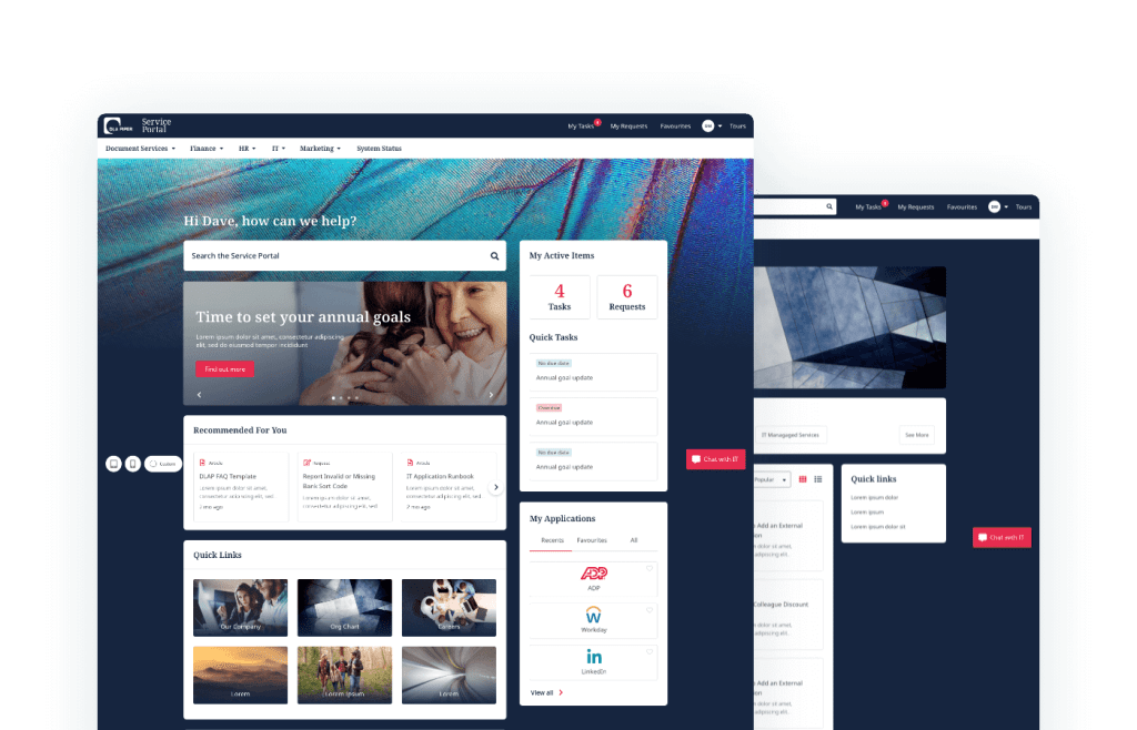 - Multi-Departmental Services: Employees can access services across HR, IT, Workplace Services, and Legal from a single platform.